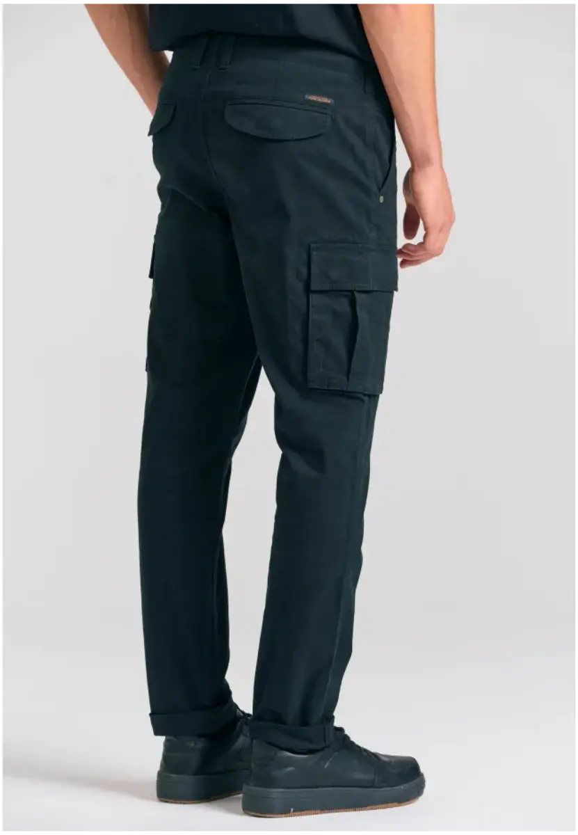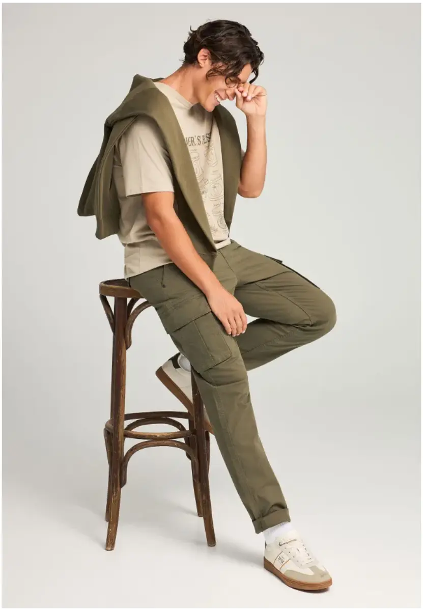 Μονόχρωμο ανδρικό παντελόνι cargo σε ίσια γραμμή με στενή κοπή, ιδανικό για όλες τις εποχές – φθινόπωρο, χειμώνα, άνοιξη και καλοκαίρι. Κατασκευασμένο από βαμβάκι με φυσικές ίνες, προσφέρει άνεση με μια μοντέρνα streetwear πινελιά. Με μεσαία μέση με θηλιές για ζώνη, κλείσιμο με κουμπί και φερμουάρ και απαλό ματ φινίρισμα, αυτό το παντελόνι συνδυάζει τη χρηστικότητα με το καθαρό σχεδιασμό. Συνδυάστε το με ένα casual μπλουζάκι ή φούτερ και πάνινα παπούτσια για ένα άνετο look, είτε στην πόλη είτε στην ύπαιθρο.
