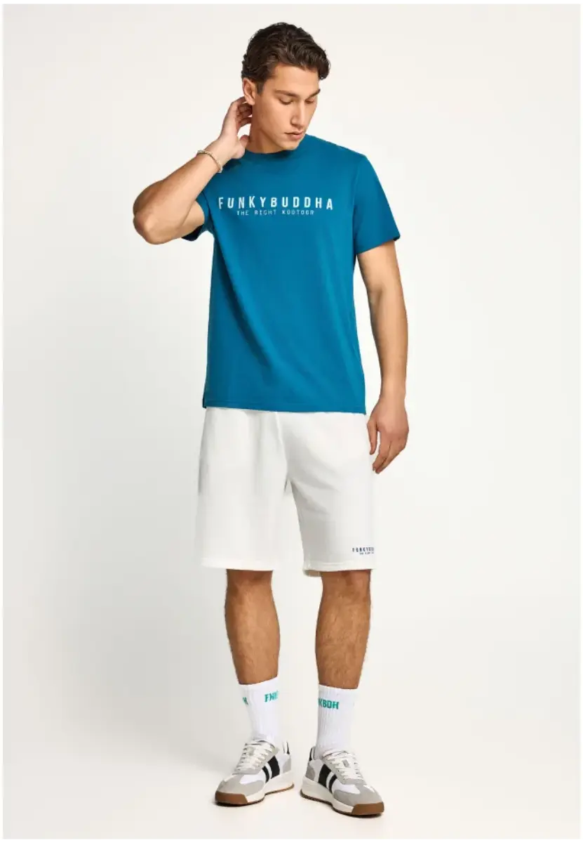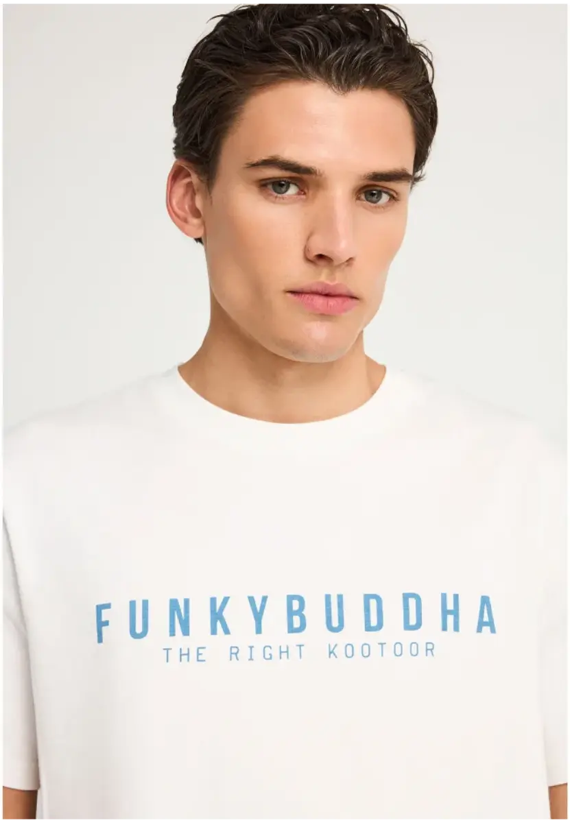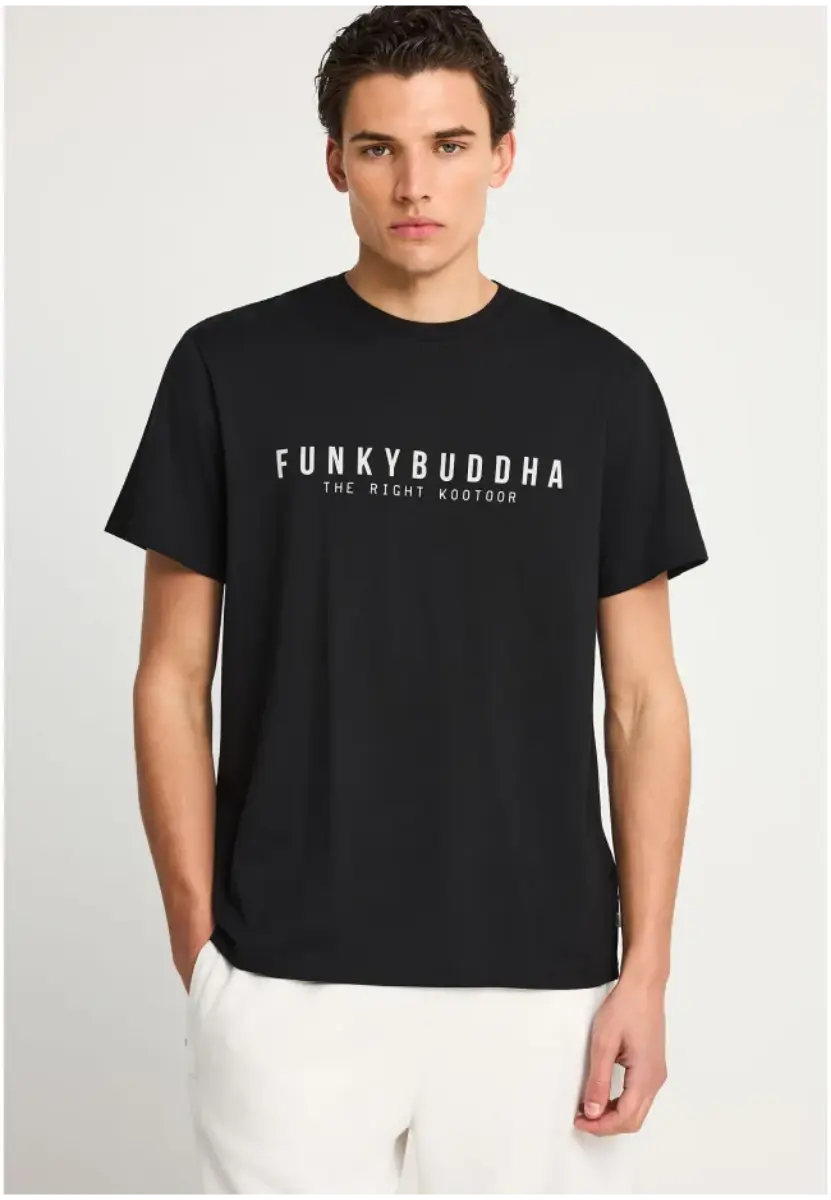 Κοντομάνικο ανδρικό t-shirt με τύπωμα το logo Funky Buddha μπροστά. Κατασκευασμένο από απαλό βαμβάκι, με κανονική εφαρμογή και στρογγυλή λαιμόκοψη, ιδανικό για όλες τις casual εμφανίσεις σου.